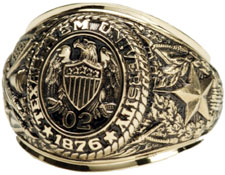 Shield at the top of Ring: Illustrates protection of the good reputation of the alma mater.