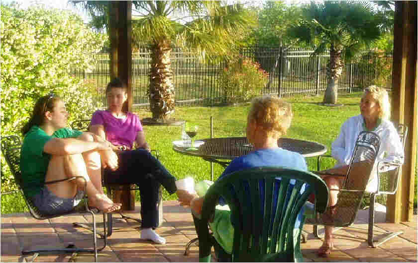 Chelsea, Deb, Nanny and Elizabeth visit in the gazebo.
