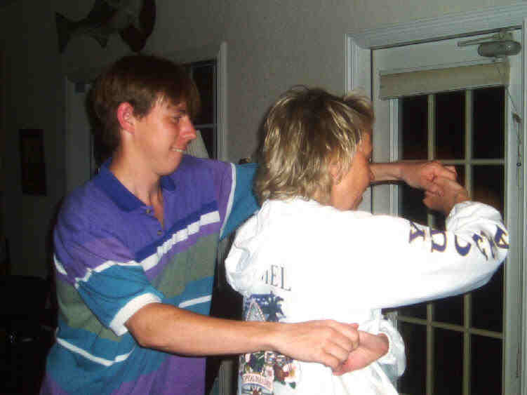 Easter morning is the egg hunt for confetti eggs AND the traditional egg toss. Here Tim gives Papa an egg shampoo, while Chelsea gives him a hug.