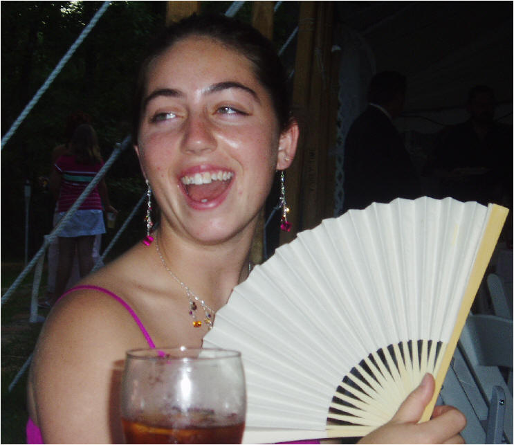 Chelsea poses with one of the fans that were given to guests. Fortunately, the weather was great and they were not needed.