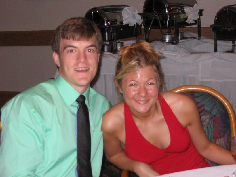 Tim has taken off his coat as he prepares for the wedding toast. Chelsea gives him moral support. (He did great, of course!)