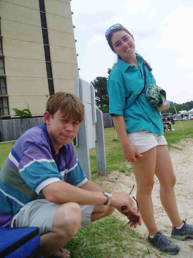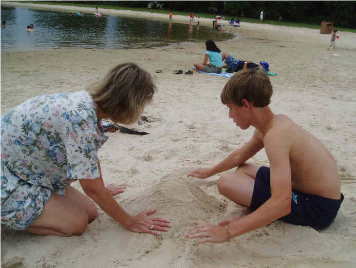 Elizabeth and Patrick build a sand castle on the beach at the resort. There was an inlet to the lake that had been fixed for swimming with a nice sandy beach around it.