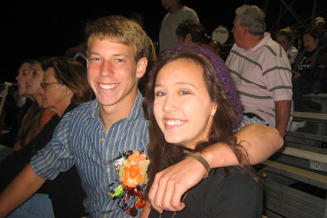 Patrick is the Duke, representing the Junior Class. This is taken at the Homecoming Game, which is on Halloween. Note his corsage. He's with Emma in the stands.
