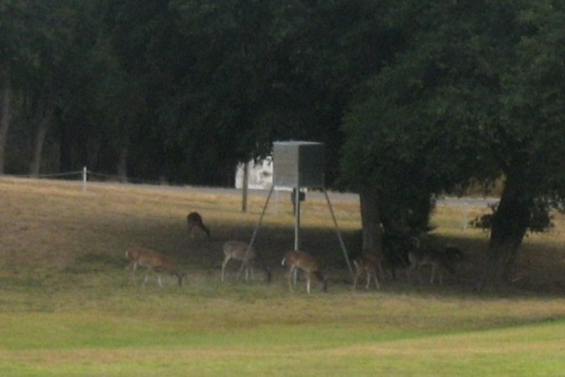 We see these deer feeding. A neighbor keeps the deer feeder full and the deer are so tame that they are usually there in the evening.