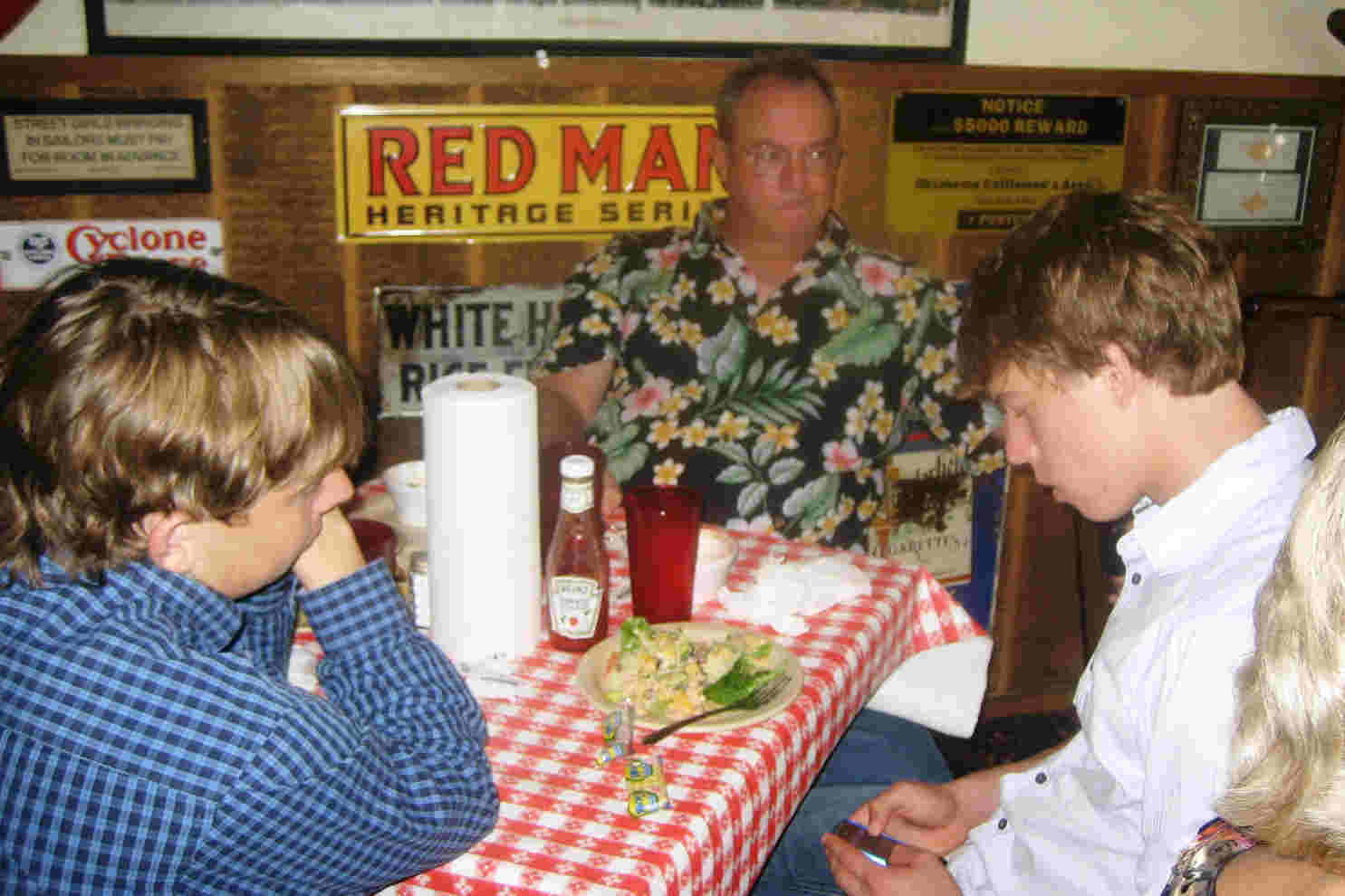 We eat burgers and salad at Denton County Independent Burger Company. Here are Tim, Jay and Patrick.