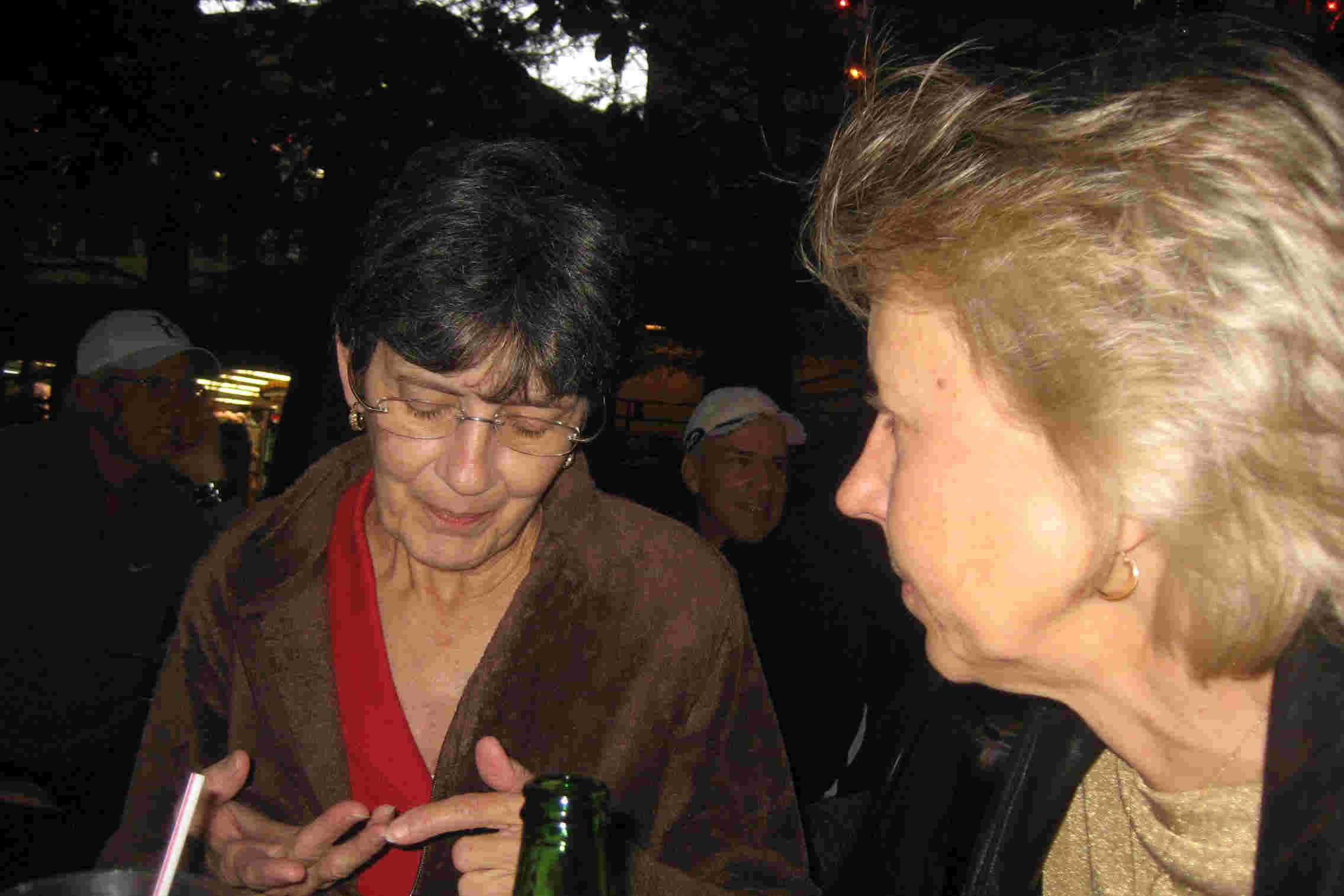 Elizabeth and Nancy enjoy food and drink on the River Walk after seeing the play "9 to 5". (it was darling.)