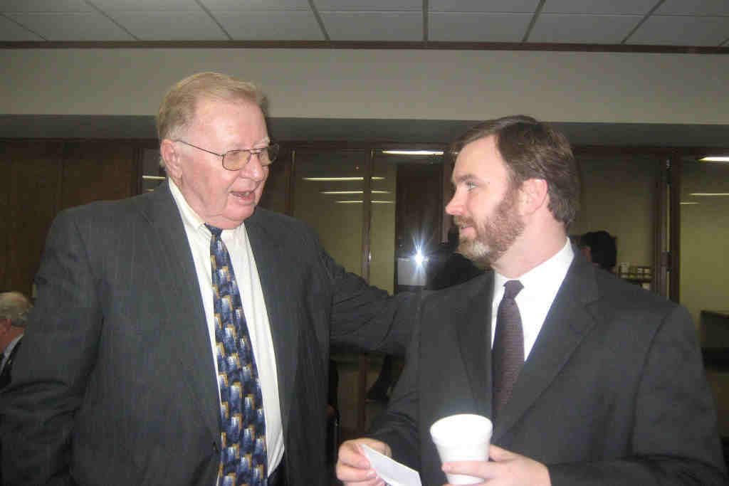 We are at the luncheon after the Memorial Service. Here is our cousin, Bill, and his son-in-law, Nicholas from Dallas.