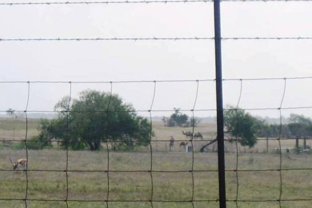 Some camels are seen in the distance