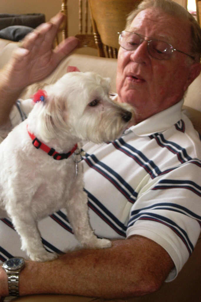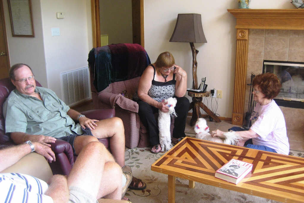 Bup and Gloria come to the lake for the July 4th reunion. We sure missed our Tulsa cousins, the Holloways. Tom and Nancy Jeanne come up with Roxie and Poppy, who sport red, white and blue bows!