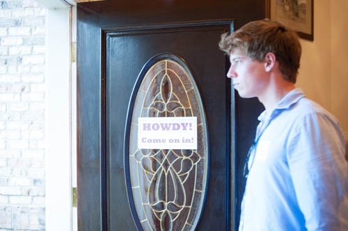 Our grandson, Patrick, greets people at the door. The boys also parked cars for people. Aren't they great!