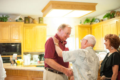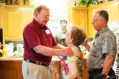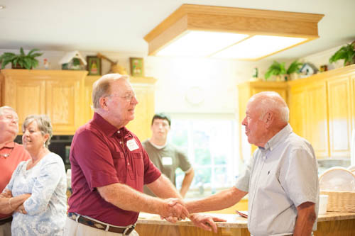 Shaking hands with John Wasson. Emily had a cold and couldn't come. Another golfing buddy, Paul Caldwell and wife Valerie look on.