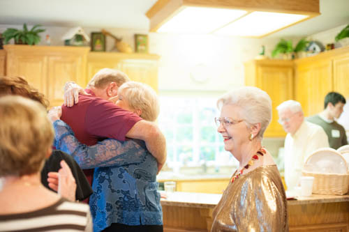 A hug from Joyce Seitz and smile from Margie Schroeder