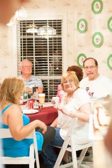Phil, Gloria, Tom, Nancy Jeanne and daughter Shawna eat in the Breakfast area.