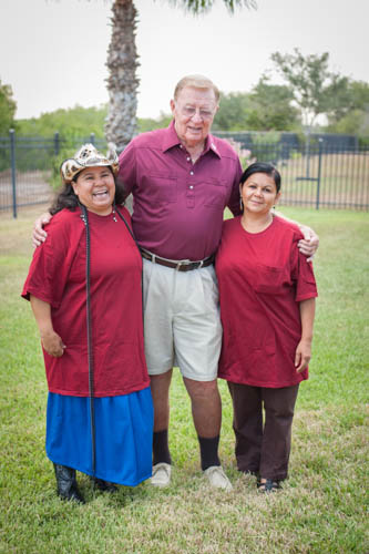At left, Elizabeth has shared her friends - Mary Ann Portis (BIG Aggie supporter), Claire Muerer and her finance Onofre Garza.