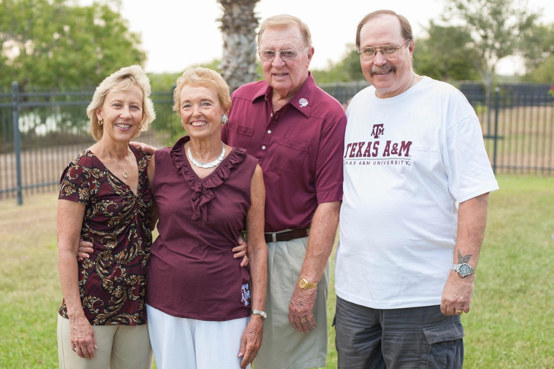 Our friends, Marilyn and Mike Higgins, came in from Beaumont. Marilyn had borrowed the Aggie uniform of our friend, John Pepper, and Mike is decked out with hat and shirt.