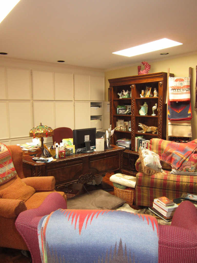 Susie's office has a wall of file cabinets, while Bill's office has a wall of gun cabinets. Each one has a wall of book cases. Bill's military weapon collection is fascinating.
