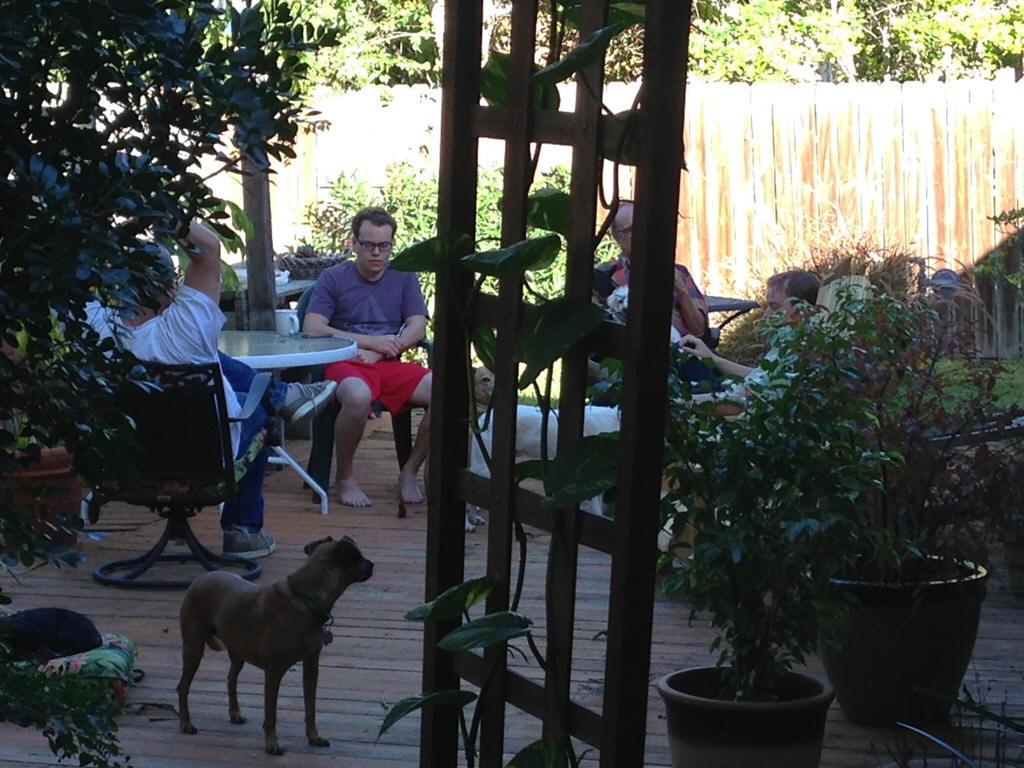 Elizabeth and her "girls", Amy, Strawberry (the dog) and Chelsea.
