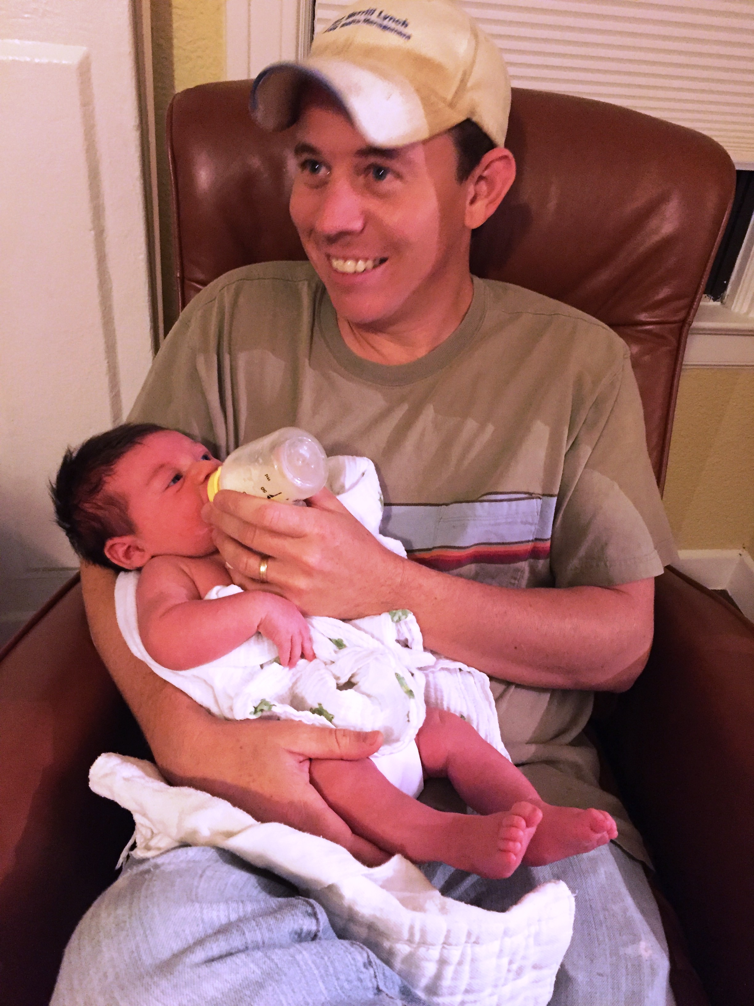 Tim gets to feed his son with a bottle for the first time. He is in such awe! Elizabeth took this picture and she says, "It's kind of like Tim is looking at her and saying 'Look, Mom!'".