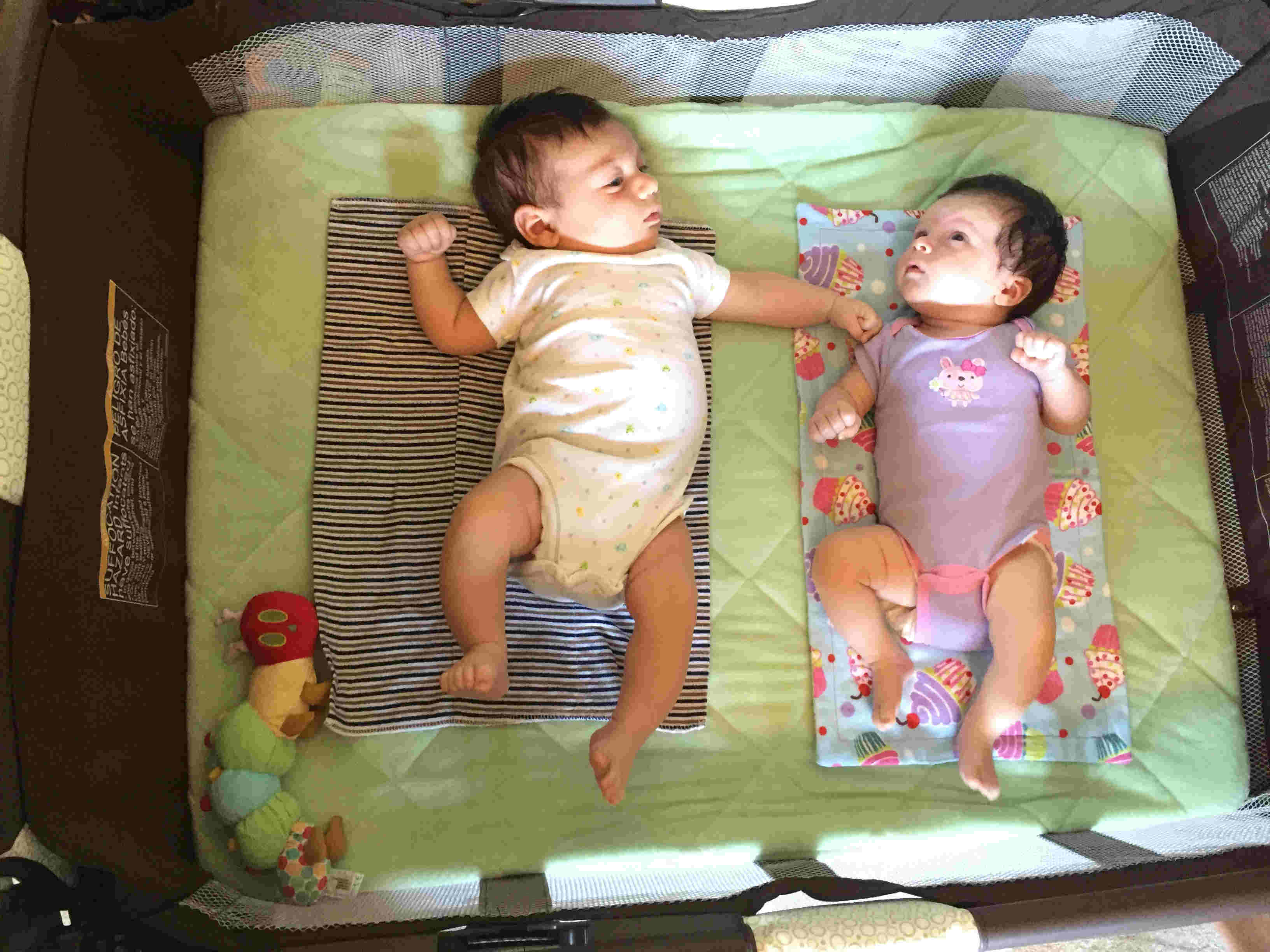 They have friends who had a baby girl, Mae, a few days younger that Conlan. Love the way that they completely ignore each other on the first Play Date. It's easy to tell the girl from the boy!