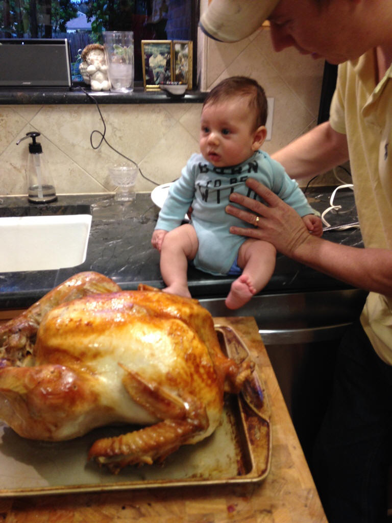 Thanksgiving arrives and Conlan is shown the turkey. He loves his bath.