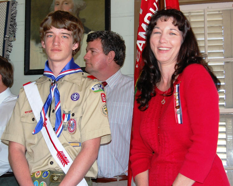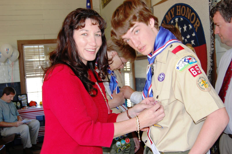 Mom gets to pin on the Eagle badge.
