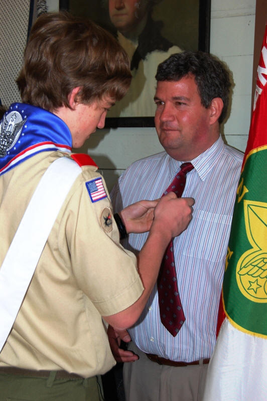 Dad Steve gets an Eagle pin. He's pretty proud too!