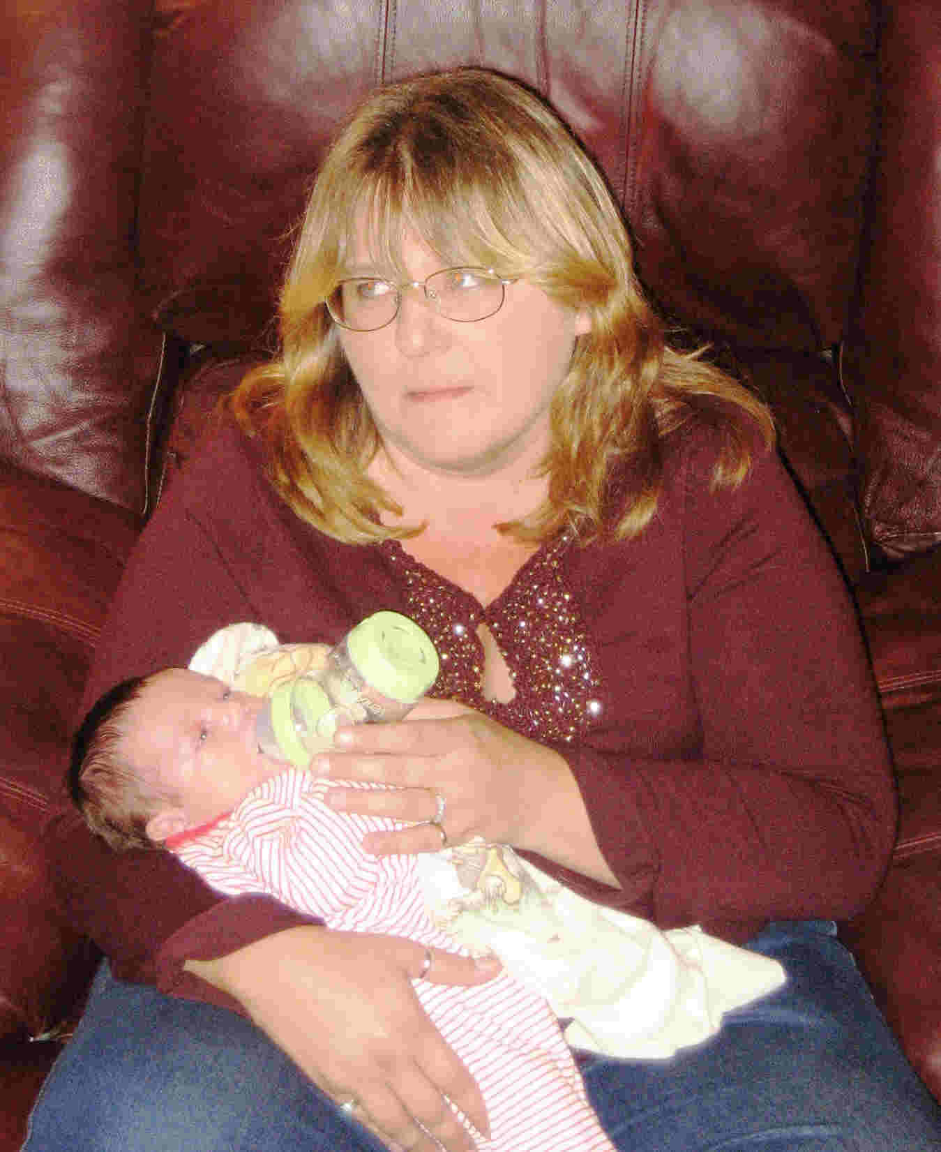 Mom Shawna gives him a bottle.